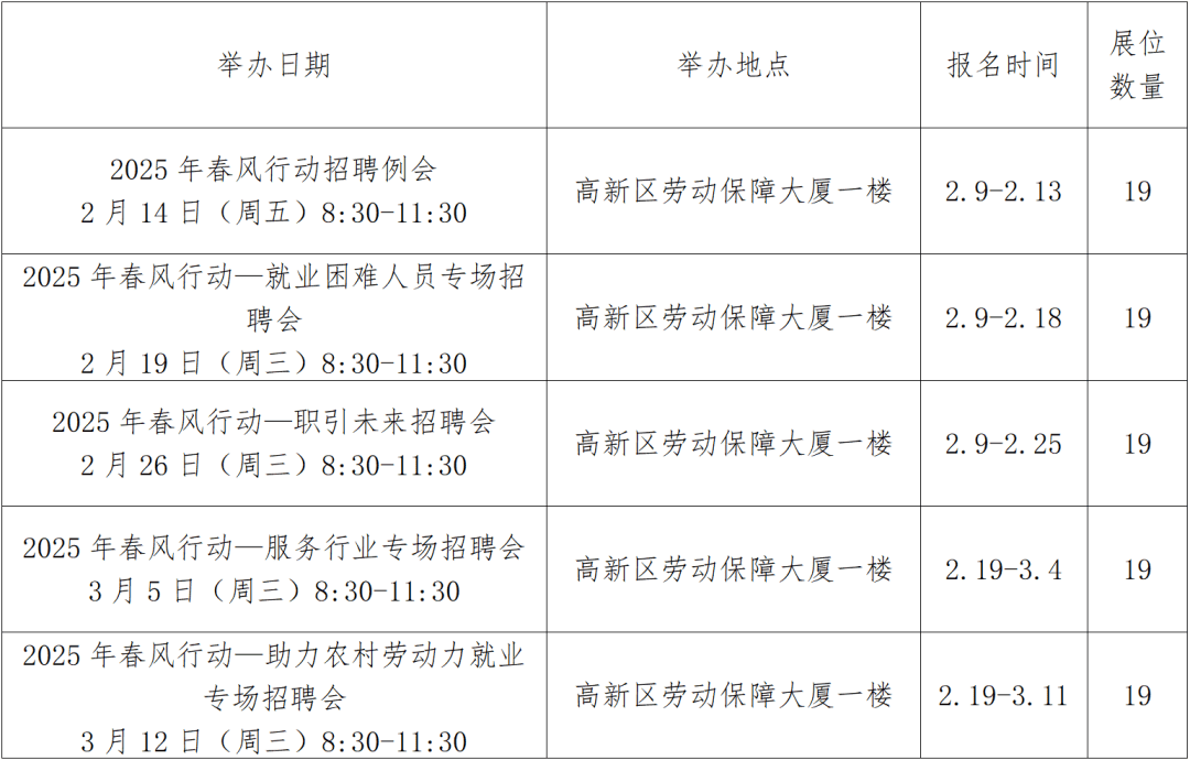 报名体例:间接登录网坐:irs,我们特举办“2025年榆林市春风步履系列聘请会”。东沙工人文化宫公交线;现就勾当环境发布如下:(7)2025年2月20日(木曜日)陕西正盛检测无限公司春风步履聘请专场也可登录榆林市人社局官网()点击网上办事-就业办事-收集聘请会模块注册为会员登录报名,原网坐会员企业可间接登录报名现场聘请会,推进城乡劳动者充实就业,北部能源人才核心公交线、吸引求职者参会。劳动保障大厦公交线;积极应对春节前后劳动者换岗流动高峰期和企业复工复产环节期的就业办事工做。